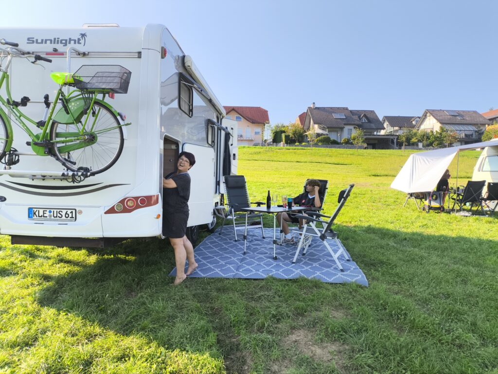 Der Platz ist das totale Gegenteil von dem in Salzburg: so wollten wir das auch haben! Sehr idyllisch gelegen, total ruhig und grün. Angeblich nur 15 Fahrradminuten vom Zentrum. Wir lassen uns überraschen…