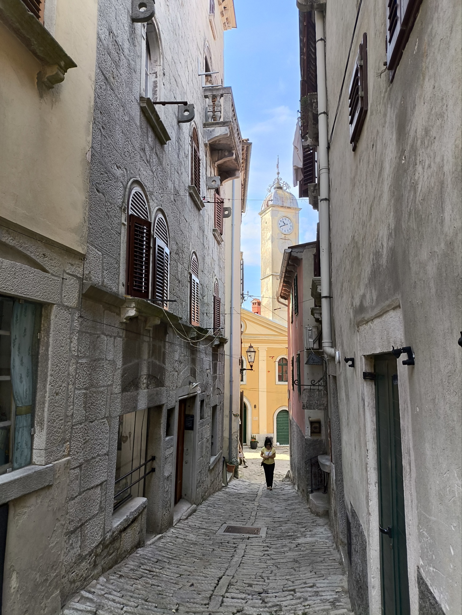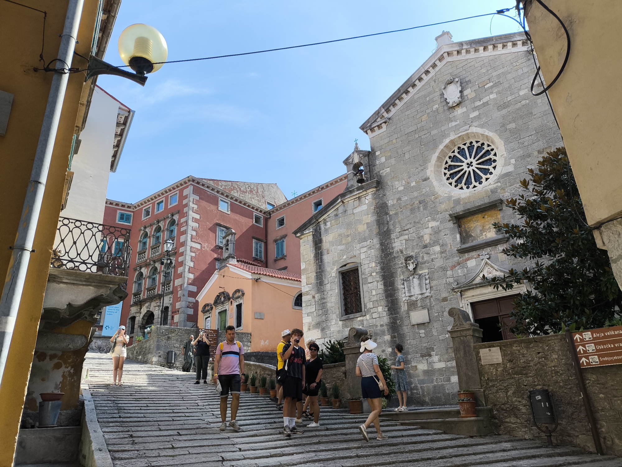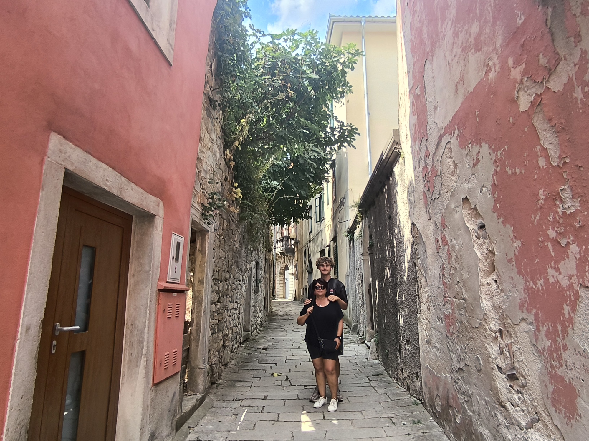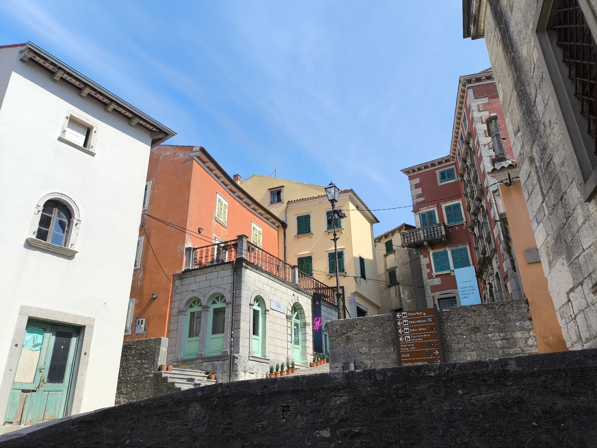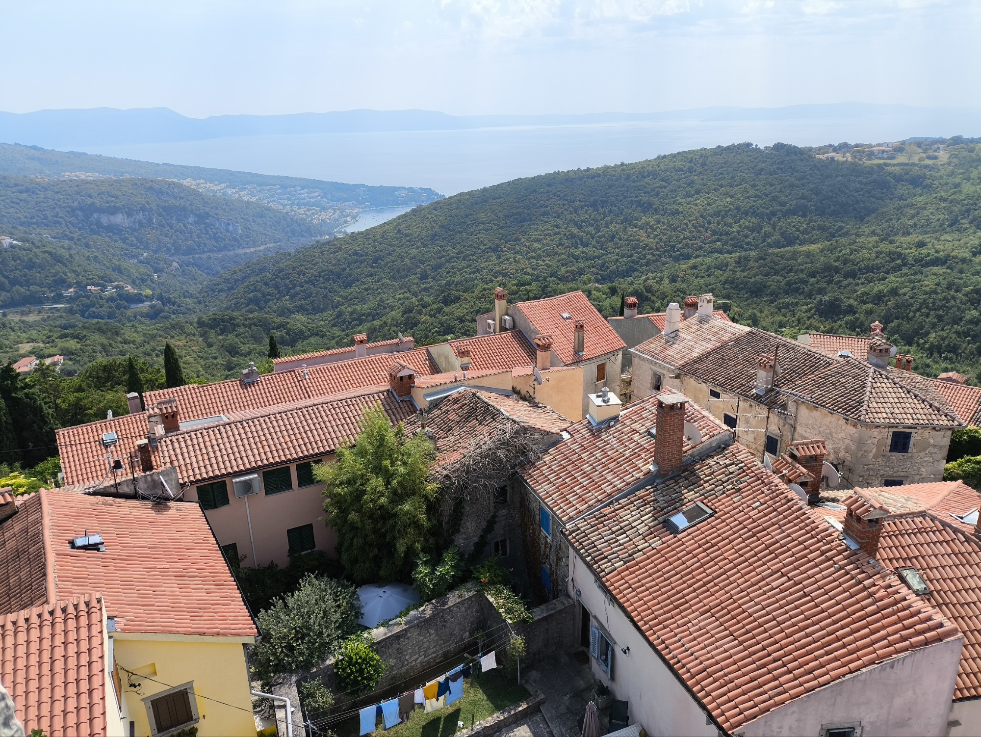 Morgens um 8 Uhr ging es los, den Tank entleert und den anderen voll gemacht… Auf dem Weg zur Autobahn haben wir noch einen Stopp in Labin gemacht, um die dortige Altstadt zu sehen. Draussen vor der Stadt an einem Friedhof geparkt wollten wir eigentlich die 1,3km zu Fuß laufen. Aber siehe da: ein älterer Herr mit einem Elektro-Gefährt stand da und nahm uns in die Stadt mit: kostenloser Service der Stadt…