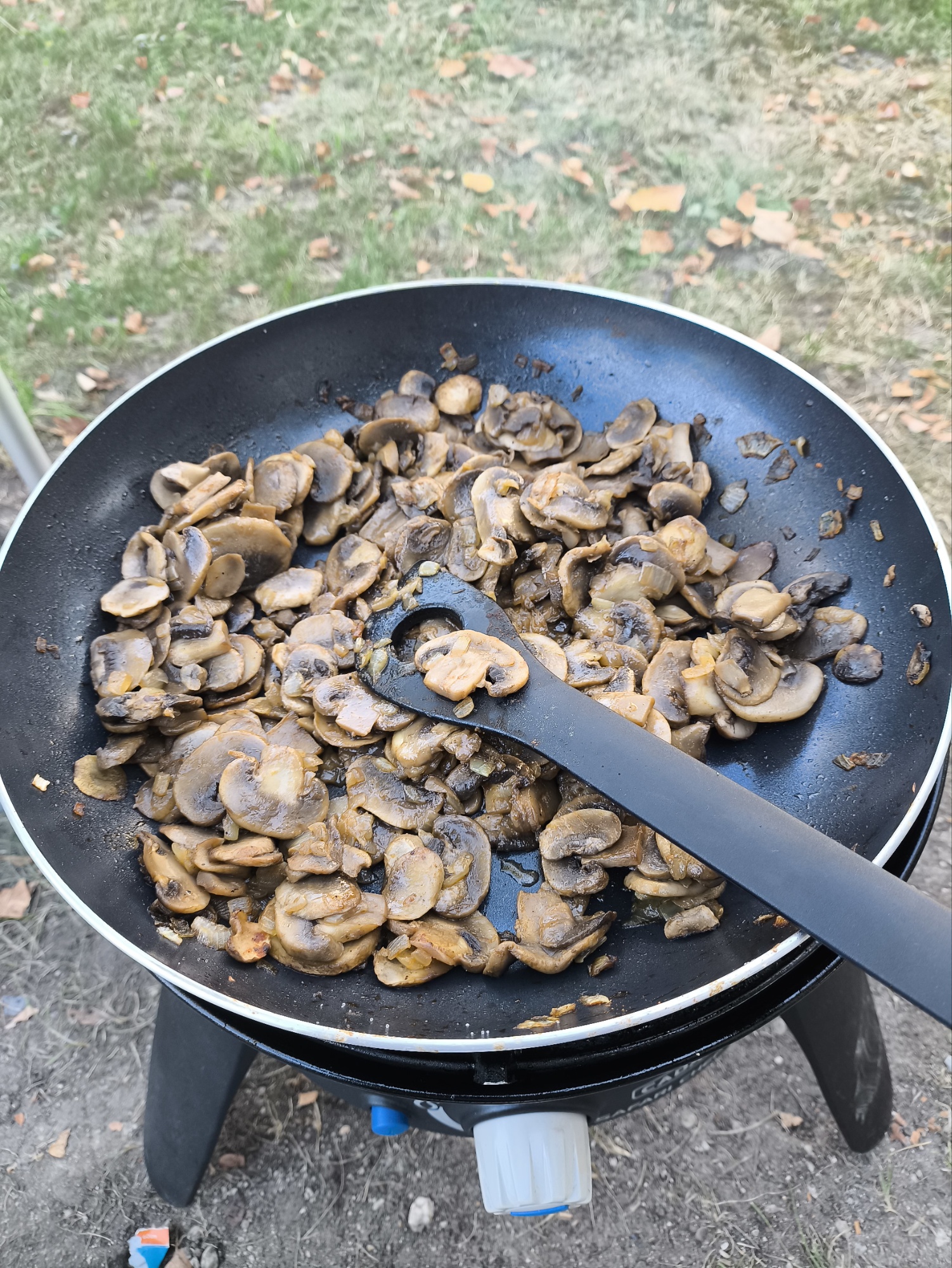 Paul hat direkt sein Zelt aufgebaut und dann haben wir – schon ziemlich hungrig – den Safari Chef angeschmissen…