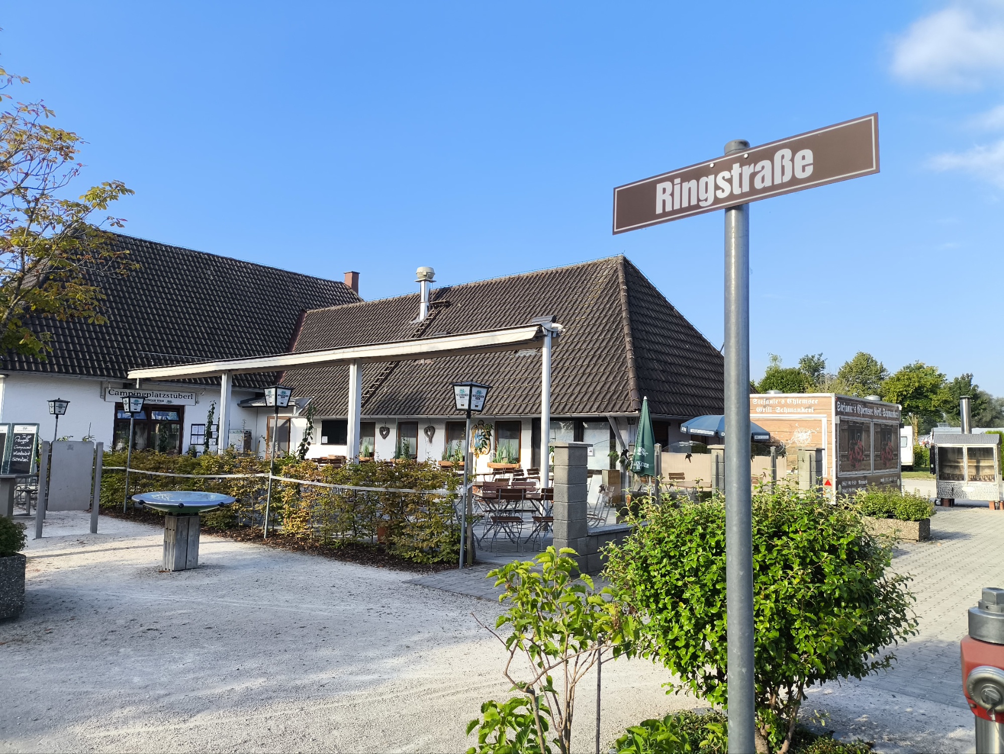 Nach einer fast staufreien Fahrt vom Wörthersee mit wunderschönen Aussichten auf die österreichischen Alpen (obwohl die Menschen dort schon ziemlich komisch sind, muss man zugeben, dass das Land sehr schön ist…) kamen wir etwas verspätet um 18 Uhr am Campingplatz Chiemsee an.